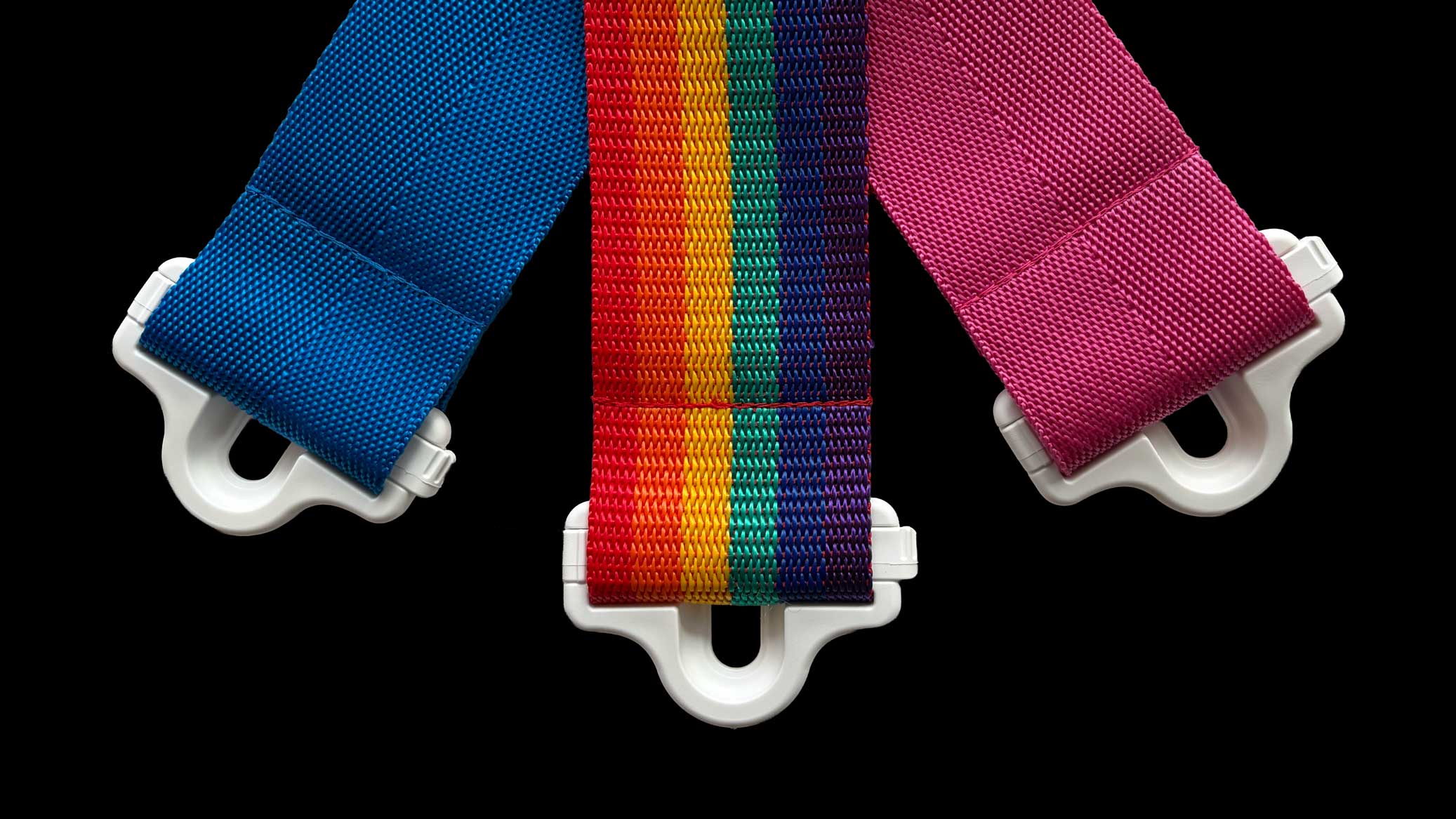 All of the components on each strap can easily be removed and swapped, allowing mixing and matching of hardware and fabric options, to create your own unique designs.